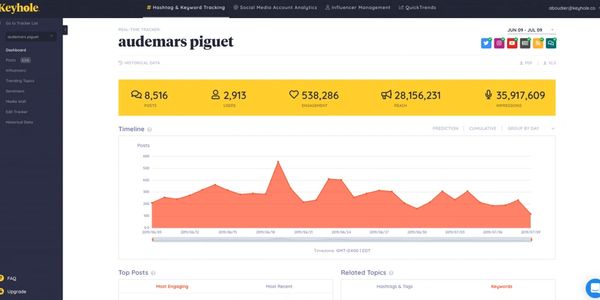 Keyhole provides hashtag analytics and keyword tracking, but is also a great Twitter analytics tool. Keyhole also compiles social media reports, analytics and mentions.