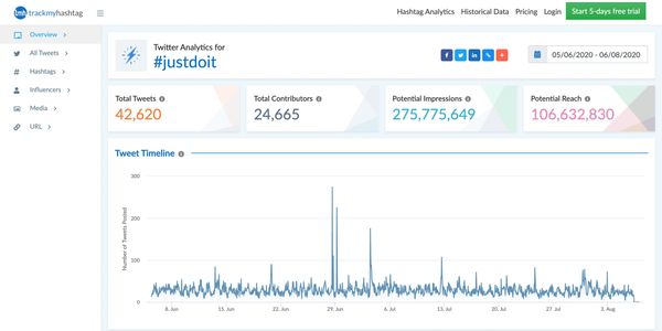 Twitter analytics tools don’t have to be for tweet and video performance only. You can also get data on hashtags. TrackMyHashtag can help your brand download data on a branded hashtag you created, track your competitors’ keywords and hashtags, and more.